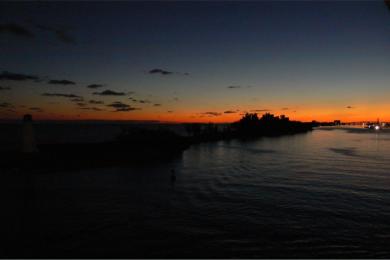26.01.2013Nach einem Tag auf See, bei herrlichem Wetter, erreichten wir mit Sonnenaufgang Nassau. An die Zeitumstellung hatte ich mich immer noch nicht gewöhnt, so dass ich wieder früh wach war und bei geöffneter Balkontür den Sonnenaufgang aus dem Bett mit erlebte. D.h. als ich sah, dass die Sonne aufgehen wollte, schnappte ich mir den Fotoapparat und habe mich auf den Balkon gesetzt. Interessant ist es auch, wenn der Lotse an Bord kommt. Er ist immer an unserer Seite (Backbord) aufs Schiff gekommen. Nach dem der Lotse an Bord war, bin ich an die Spitze des Schiffes gegangen (Deck 13) und habe mir das Anlegemanöver angesehen. Vorher aber noch eine Tasse Kaffee (gibt es ab 6:00 Uhr) geholt. War schon toll. Nassau noch verschlafen, der Sonnenaufgang und wie die Stadt und der Hafen langsam zu leben erwacht. nächste Seite>