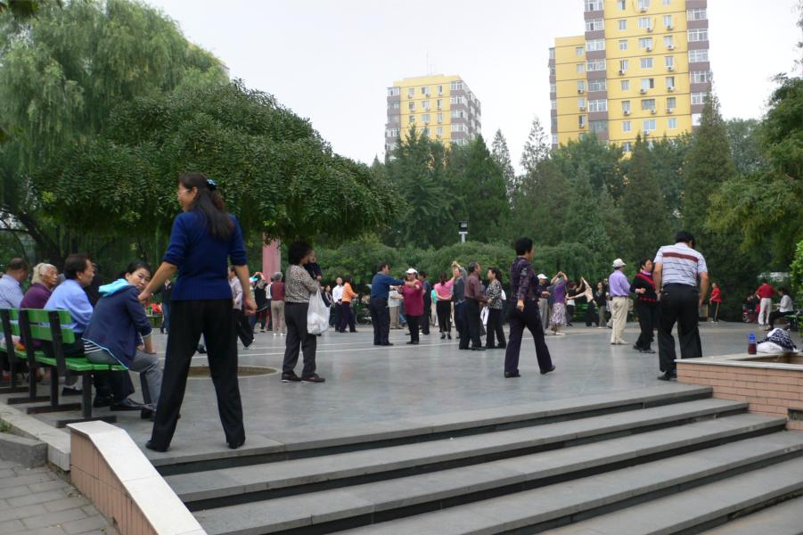Chinarundreise 2011Beijing-ZusammenfassungFast 5 Tage Peking, viel gesehen aber richtig selbständig haben wir uns nicht in der riesen Metropole bewegt. Wir waren den ganzen Tag immer unterwegs.Mein GPS-Empfänger von E-Trex hat gute Dienste mit einer Karte von OpenStreetMap geleistet. Unsere Unterkunft in Beijing war auch in Ordnung. Das Essen ist meinem Magen nicht so richtig bekommen, wobei in der Regel beim Frühstück auch für meinen europäischen Magen immer genug vorhanden war.Zwei Tipps:Immer Klopapier dabei haben und Imodium eine Tablette mal am Tag.Wer denkt es gibt dort etwas Preiswert der irrt! Natürlich einheimische Erzeugnisse findet man schon oder echte Rolex-Uhren für 2 Euro. Da wo man handeln kann,hat man, wenn man um die Hälfte runter handelt, noch zu viel gezahlt.In vielen Hotels ist der Internetzugang kostenlos. Nur ziemlich langsam, wenn man Mails versendet. Wahrscheinlich die Zensur! Bilder auf die Webseite von Picasazu laden ist mir nicht gelungen. Vermutlich waren die Seiten gesperrt.Das sieht man auf allen Plätzen in den Städten, spontane Zusammenkünfte zum Tanz oder Spiel Hier nur wenige Meter von unserem Hotel entfernt..