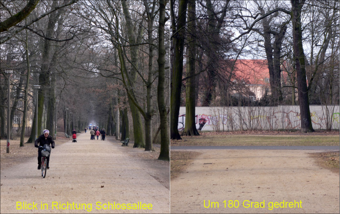 Hier sollte als Verlängerung der Schlossallee ein Eingang zum Schloss errichtet werden. Zu DDR-Zeiten