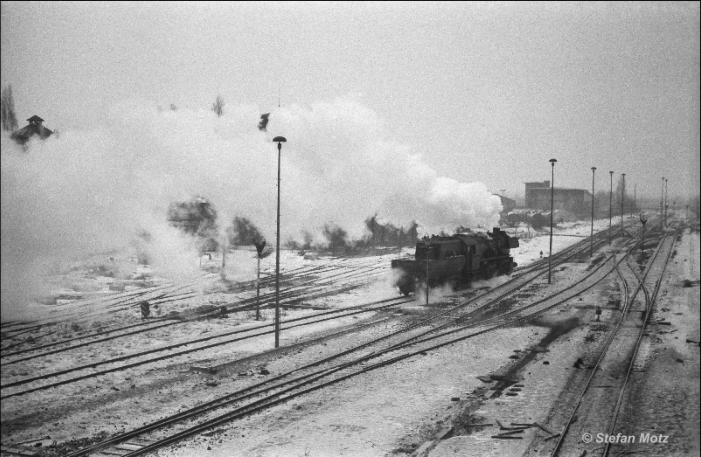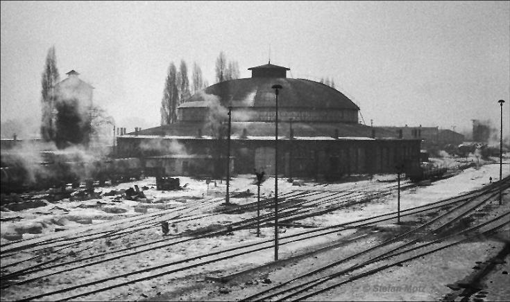 Blick auf das ehemalige Reichsbahn Ausbesserungs Werk (RAW) oder hieß es Bahnbetriebswerk?1979 .
