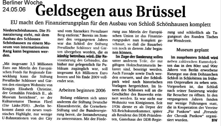 Nach der Rekonstruktion strahlt das alte-neue Schloss wieder im neuen Glanz. 2006 wurde mit der Rekonstruktion endlich begonnen, nach dem 2005 die Stiftung Preußische Schlösser und Gärten neuer Eigentümerwurde. Etwa 9 Millionen Euro soll es kosten. Davor war die Zukunft des Schlosses ungewiss und es drohte der Verfall. 2010 wurde es fertigge-stellt und kann jetzt auch im Inneren besichtigt werden.12.04.2011