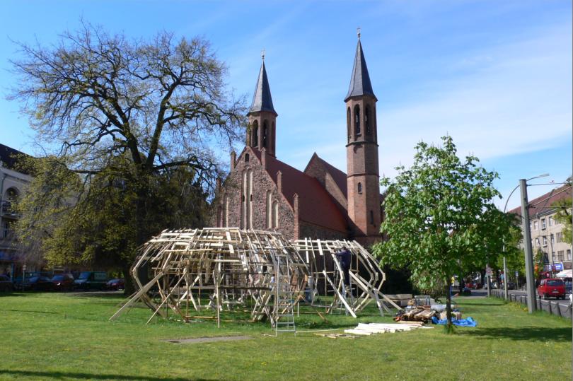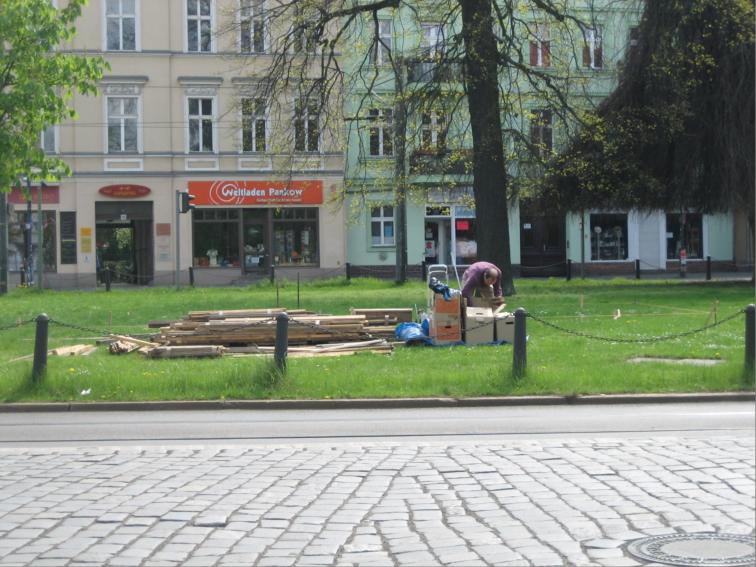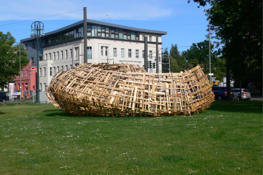 Die Statik hat der Künstler wohl doch falsch berechnet. Nun ja, da hat das Bezirksamt schon mal für den Winter vorgesorgt